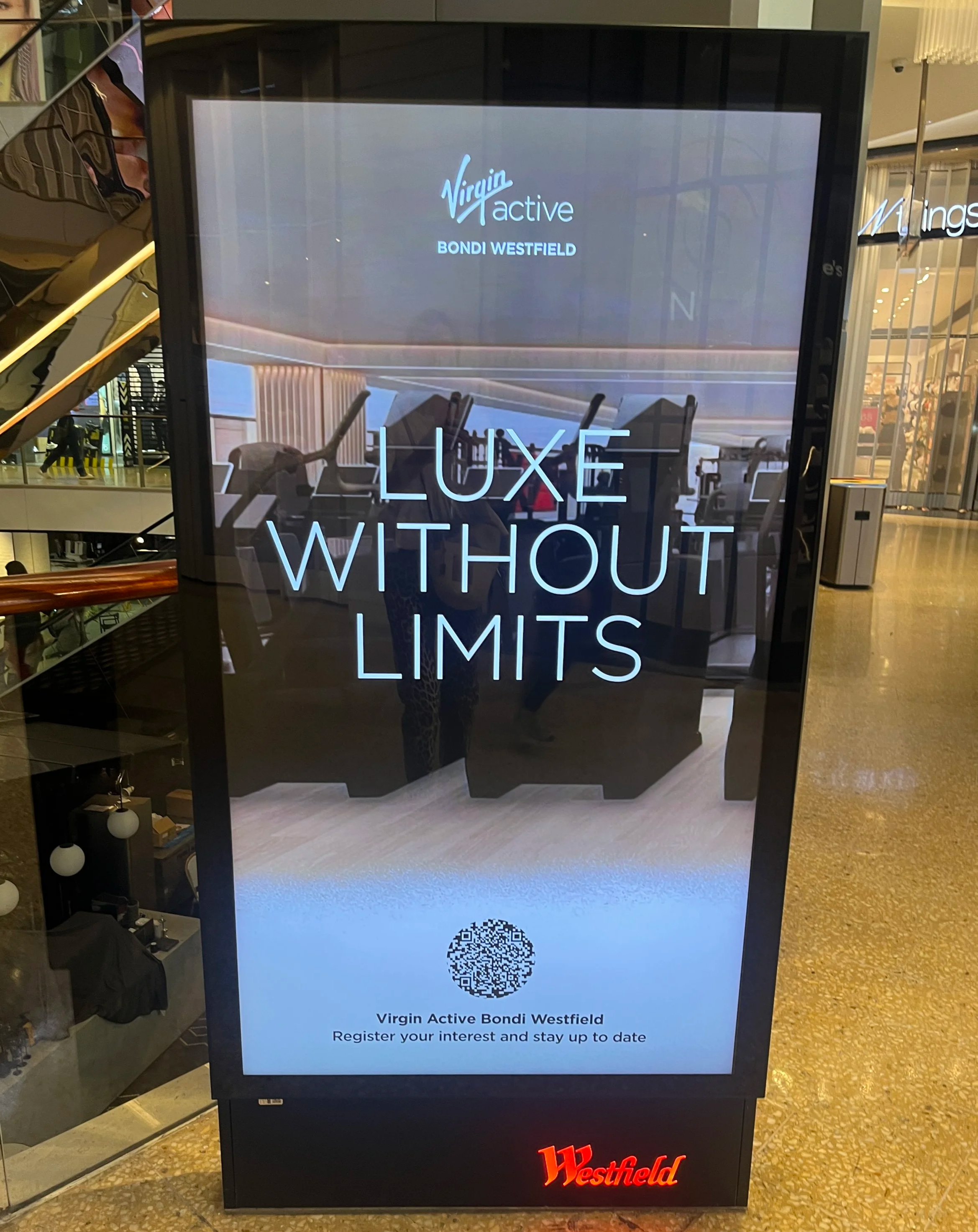 The copy positioned Bondi Westfield as Virgin Active’s new luxe destination for the Eastern Suburbs: a complete luxury lifestyle under one roof where workout meets wellness meets whatever-you-want.